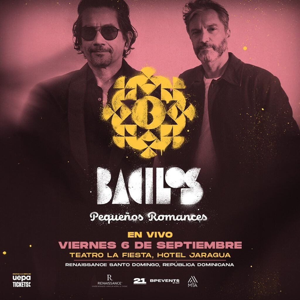Iniciamos el fin de semana con buena música. La reconocida banda Bacilos se presenta en el Teatro Jaragua, una oportunidad única para disfrutar de su mezcla de pop latino y sonidos tropicales que han marcado generaciones. ¡No te lo pierdas!